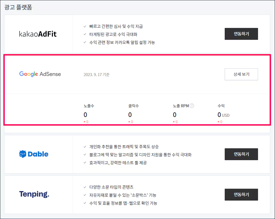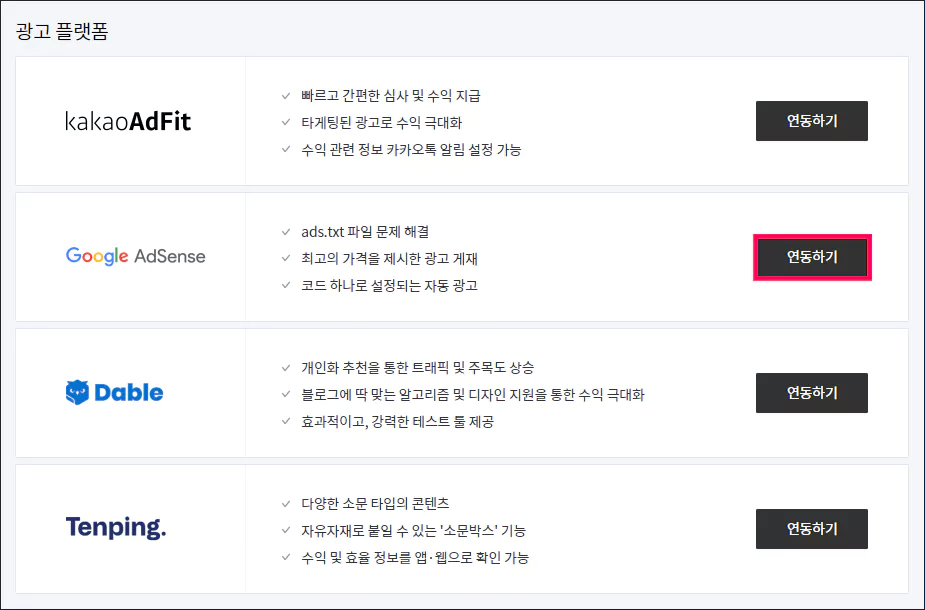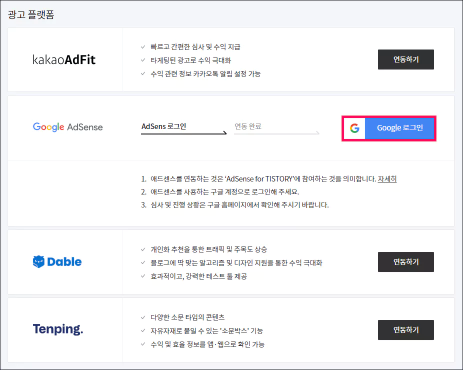 2. 우리는 구글 애드센스 신청을 하는 것이기 때문에 두 번째 Google AdSense 연동하기를 클릭합니다.