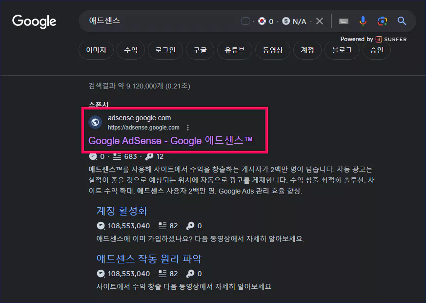 1. 검색창에 "구글 애드센스"를 검색해서 사이트로 이동하거나 아래의 링크를 클릭합니다.
