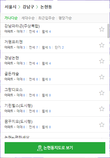 4. 숫자를 눌러서 보고 싶은 단지명 상세 보기를 누르면 됩니다.