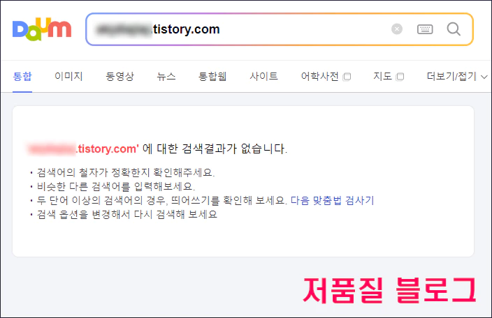 - 제목 : 저의 블로그가 다음 검색에 노출되지 않습니다. 도와주세요.
