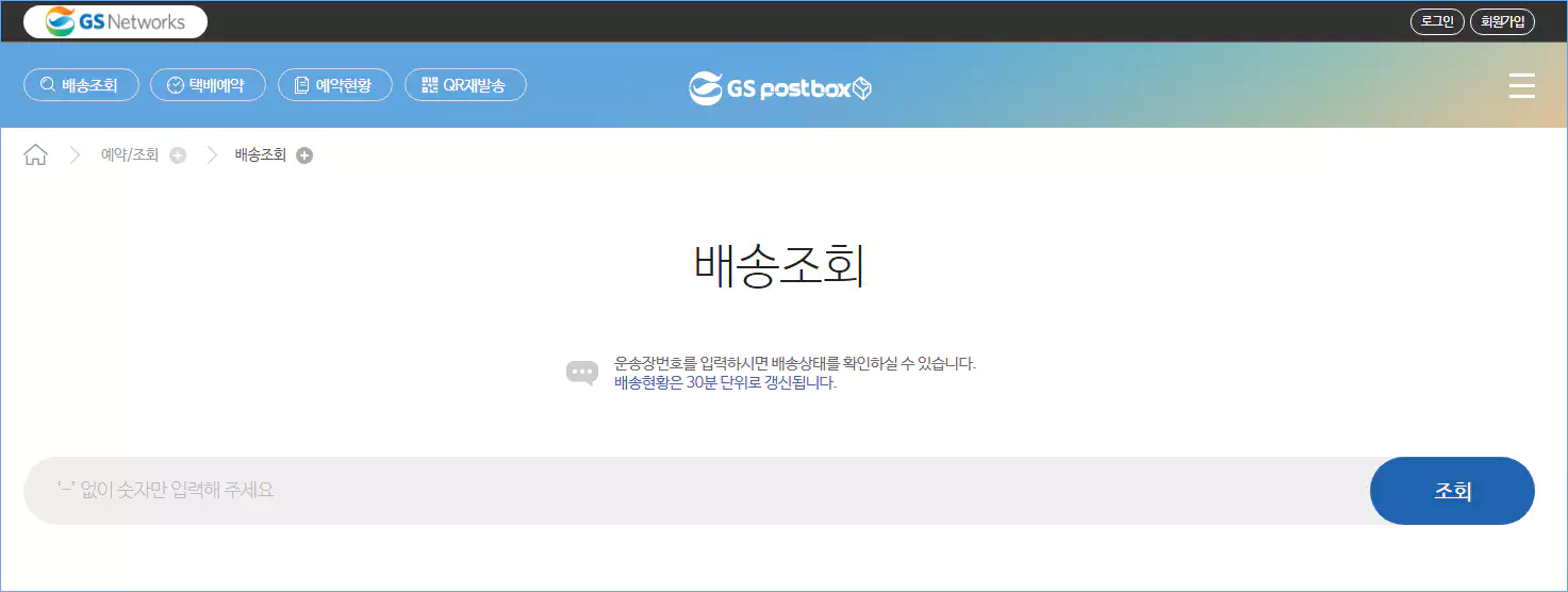 편의점에 물품을 접수 후 내 물건이 어디쯤 가고 있나? 또는 받는 사람이 언제 오는지 확인하기 위해서는 배송 조회를 하게 되는데요. 배송조회 또한 GS Post Box 사이트에서 운송장 번호로 조회가 가능합니다.